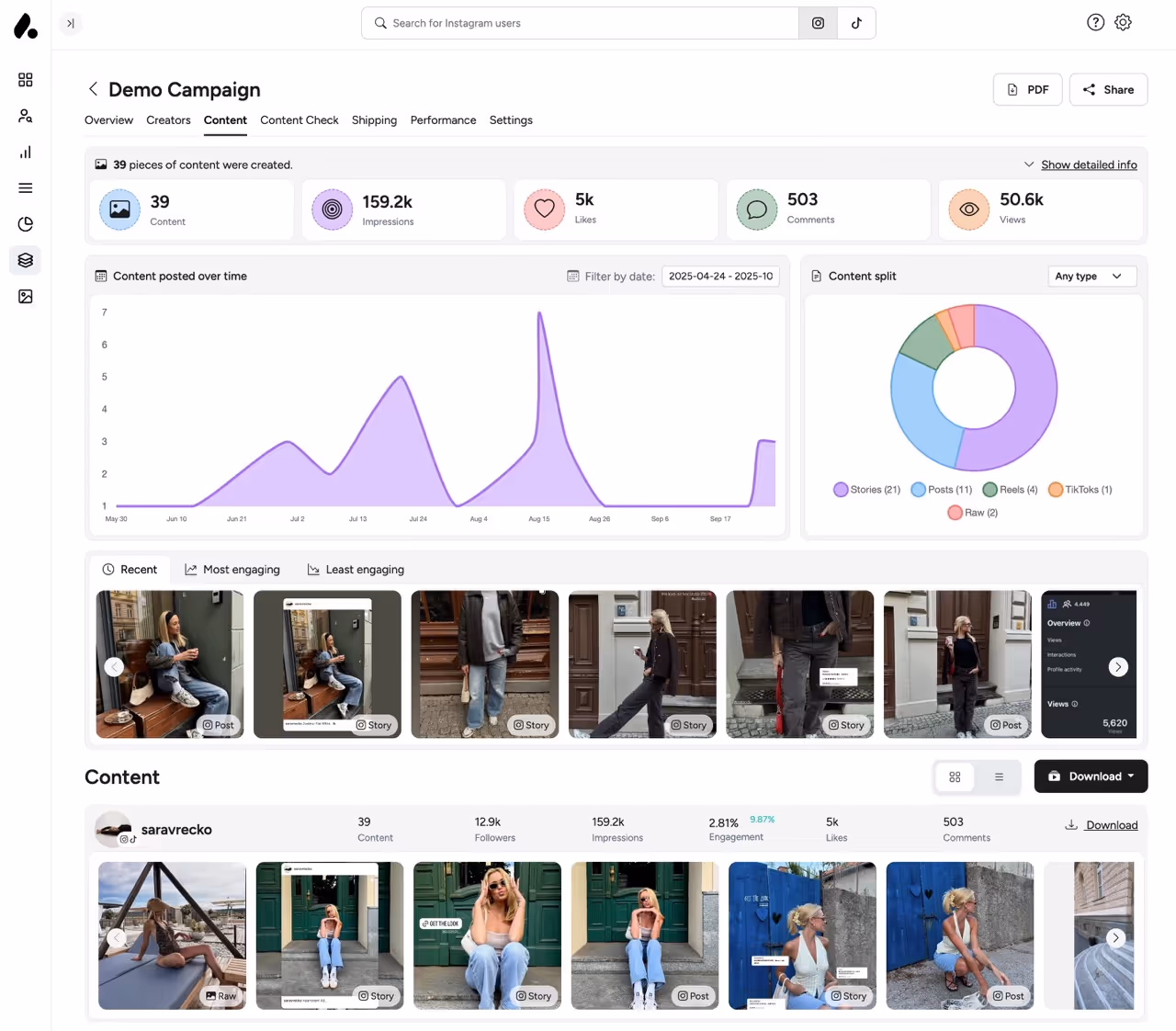 We currently support automated content tracking on Instagram and TikTok, with more platforms coming soon.